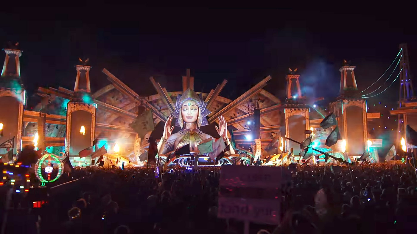 In 2022 I had the enormous privilege of being invited to contribute to the design of the main-stage and a number of sponsor’s stands by the team at Leisure Expert Group, Netherlands, on behalf of the event organisers, Insomniac, Los Angeles. Unfortunately, I’m not permitted to publicly share my designs but from the dozens of initial explorations of the stage design that I undertook, the final design of the stage inflatables does significantly draw upon my later contributions, notably the ‘art deco’ video screen towers, the design of the rays and how they intersect those towers, and the vines wrapping around the tower bases and defining the central stage.